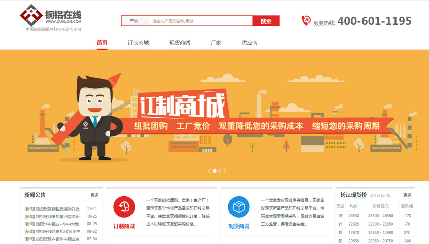銅鋁在線為有色金屬行業(yè)的電子商務(wù)交易平臺(tái),采用系統(tǒng)自動(dòng)組批團(tuán)購的方式,將需求相同的客戶組批給統(tǒng)一廠家競價(jià),以組團(tuán)形式在降低買家采購成本的同時(shí)降低工廠的生產(chǎn)成本。平臺(tái)同時(shí)提供現(xiàn)貨采購模式,供用戶實(shí)現(xiàn)快速線上交易。