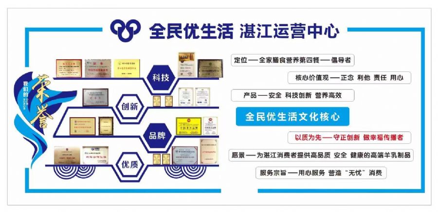 全民優(yōu)生活湛江運營中心成立于2018年,目前在湛江約有40家線下門店,致力于將全民優(yōu)生活打造成為湛江老百姓心目中的羊乳制品第一品牌。