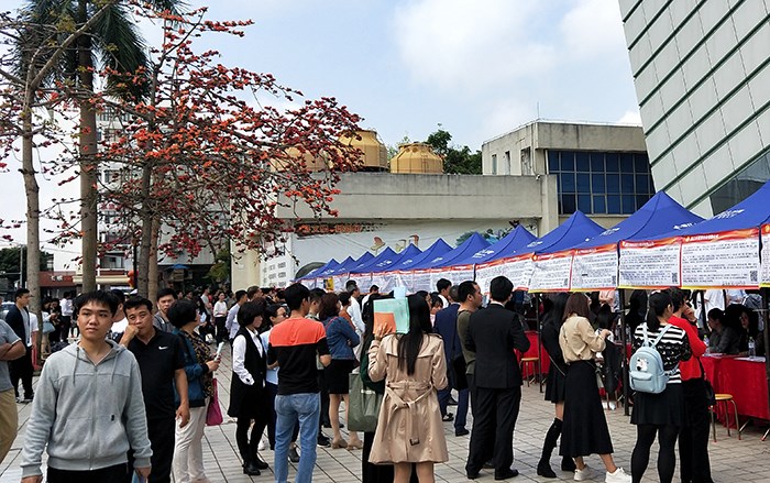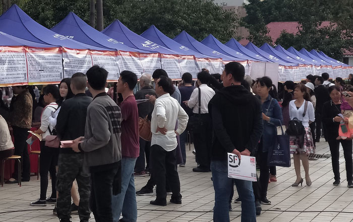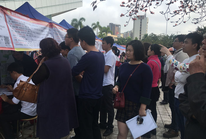 「招聘會(huì)現(xiàn)場(chǎng)人頭攢動(dòng)」